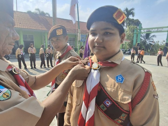 MTsN 1 Merangin, (1/9/2025)_Sebanyak delapan anggota Gerakan Pramuka Gugus Depan 063-064 MTsN 1 Merangin menerima penghargaan Bintang Tahunan pada Rabu, 27 Agustus 2025. Penghargaan ini diberikan dalam Upacara Pembukaan Latihan (Upabuklat) rutin yang berlangsung di lingkungan MTsN 1 Merangin. Wajah para penerima tampak bahagia saat menerima penghargaan tersebut.