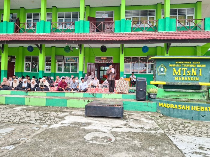 Sambutan Kepala Madrasah MTsN 1 Merangin Tri Sulistiyo, S.Pd., M.A., menyampaikan bahwa peringatan Maulid Nabi ini menjadi momentum penting untuk merefleksikan dan meningkatkan kecintaan kepada Nabi Muhammad SAW. Beliau juga mengajak seluruh hadirin untuk mengimplementasikan nilai-nilai Islam dalam kehidupan sehari-hari.