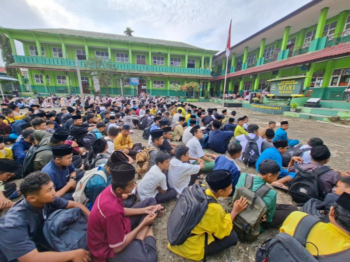 MTsN 1 Merangin (9/9/2025)_Semangat keagamaan terus dilangitkan dengan menggelar peringatan Maulid Nabi Muhammad SAW 1447 H. Acara yang berlangsung di lapangan madrasah dihadiri oleh seluruh sivitas madrasah.