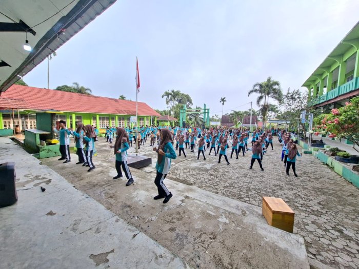 MTsN 1 Merangin, (10/9/2025)__Kegiatan senam pagi berlangsung lancar. Pada kesempatan kali ini, siswa kelas VIII menjadi petugas sekaligus peserta senam. Mereka telah berkumpul di halaman madrasah sejak pukul 06.30 WIB. Hal ini menunjukkan kedisiplinan dan antusiasme dalam mengikuti kegiatan rutin tersebut. Instruktur senam dipilih dari perwakilan kelas yang telah menguasai gerakan senam. Mereka telah ditunjuk sehari sebelumnya dan mendapatkan bimbingan dari guru olahraga. Gerakan senam yang diajarkan merupakan bagian dari materi pelajaran olahraga, sehingga peserta didik dapat mempraktikkannya dengan baik saat kegiatan berlangsung.