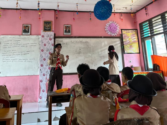 Pada latihan kali ini, materi yang diberikan adalah latihan semaphore. Sebelum praktik lapangan, PB Kak Hanif dan Dwi memberikan materi tertulis kepada para anggota pramuka. Setelah salat asar, kegiatan dilanjutkan dengan praktik semaphore di lapangan, sehingga langsung implementasi pengetahuan yang telah diperoleh.