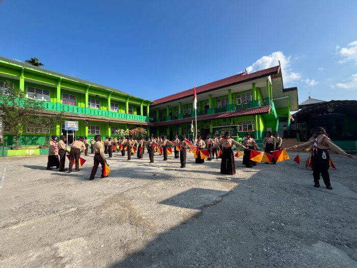 MTsN 1 Merangin, (10/9/2025)__Latihan rutin Gerakan Pramuka Gugus Depan 063-064 MTsN 1 Merangin dilaksanakan dengan tertib. Kegiatan ini diawali dengan upacara pembukaan latihan atau Upabuklat, yang sudah menjadi ketentuan Gerakan Pramuka sebelum dimulainya aktivitas Pramuka.