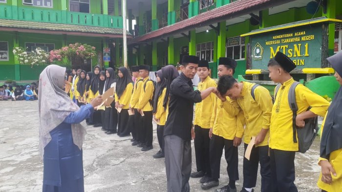 MTsN 1 Merangin, (12/9/2025)_Badan Amil Zakat Nasional (Baznas) kembali menyalurkan bantuan kepada 22 peserta didik di MTsN 1 Merangin. Bantuan ini bertujuan untuk meringankan beban ekonomi para peserta didik yang membutuhkan agar mereka dapat lebih fokus dalam menempuh pendidikan dan meningkatkan prestasi akademik. Serta mendorong mereka untuk terus melanjutkan pendidikan hingga tuntas. Hal yang lebih utama dapat mencegah peserta didik putus sekolah.