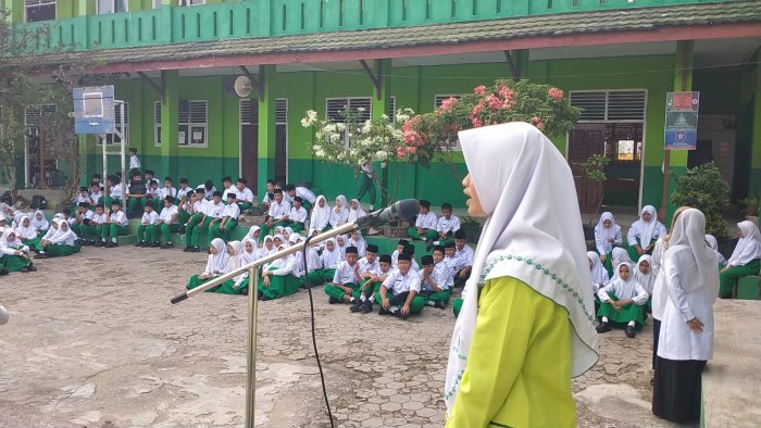 MTsN 1 Merangin, (15/9/2025)_Kampanye seru calon ketua Organisasi Siswa Intra Madrasah (OSIM) di MTsN 1 Merangin berlangsung selepas upacara. Suasana pemilihan semakin memanas seiring dengan upaya para calon untuk menarik perhatian dan dukungan dari para pemilih.