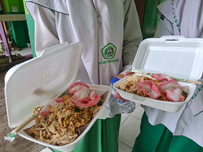 Saking favorit dengan minuman dan makanan tersebut, bisa dibayangkan tiap istirahat harus rela berdesak-desakan untuk mendapatkannya. Menurut mereka minuman dan makanan itu pas di lidah. Rasa manis dan komposisi teh menjadikannya es spesial. " Mi Petuih" pun demikian rasa gurih dan pedas yang bisa dipesan sesuai selera, membuat puas dinikmati. Nah, penasaran dengan menu-menu kantin lainnya yang menjadi favorit peserta didik MTsN 1 Merangin, ikuti terus update Web madrasah ya.