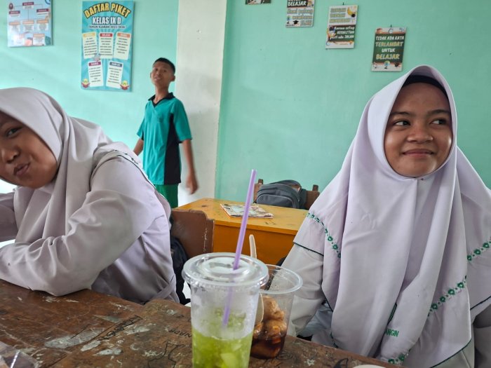 MTsN 1 Merangin, (7/10/2025)_Hujan yang mengguyur Kota Bangko sejak Subuh tidak mengurangi rasa haus peserta didik MTsN 1 Merangin setelah melaksanakan pembelajaran. Bahkan mereka merasa sangat lapar efek dari cuaca yang dingin. Bel istirahat yang ditunggu akhirnya berbunyi. Semua berlarian menuju kantin. Berebut untuk membeli makanan favorit masing-masing. Ada keheranan ketika reporter mengamati, yaitu beberapa murid saling berdesakan untuk membeli suatu makanan. Lalu bertanya kepada salah satu murid yang bernama Fatur (bukan nama samaran)...hehe. Katanya, kalau tidak berebut nanti tidak kebagian es itu. Es yang berwarna hijau yang rupanya menjadi rebutan. Es itu di sebut "Es Teh Hijau Pak Wo".