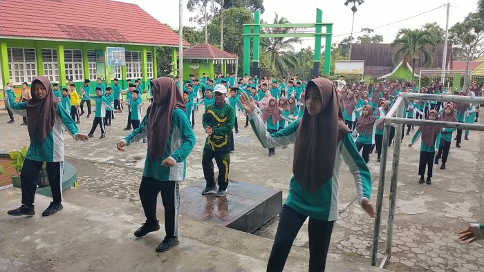 MTsN 1 Merangin, (8/10/2025)_Senam pagi adalah agenda rutin setiap Rabu pagi. Kegiatan ini menjadi tanggung jawab seluruh siswa kelas VIII dan dipimpin oleh pembina senam, Pak Muksim, S.Hi, serta didampingi beberapa instruktur senam berpengalaman.
