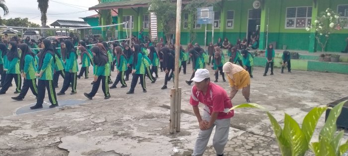 MTsN 1 Merangin, (15/10/2025)_Kembali bugar dengan kegiatan senam pagi. Kali ini jadwal seluruh peserta didik kelas VII. Kegiatan ini dipandu oleh Bapak Muksim, S.HI, seorang instruktur senam yang berasal dari Kungkai dan dikenal piawai berbahasa Jawa. Beliau dipercaya menjadi instruktur utama. Kemudian dibantu oleh beberapa peserta didik yang telah dilatih khusus untuk menjadi instruktur senam di depan teman-temannya. Mereka juga memberikan arahan gerakan senam kepada peserta senam.