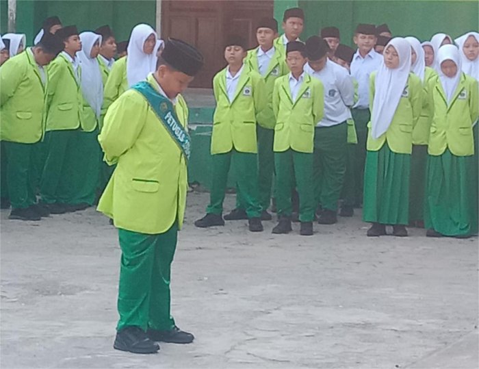 Bertindak sebagai pembina upacara setiap awal bulan adalah kepala madrasah. Bapak Tri Sulistiyo, S.Pd., M.A., menyampaikan tentang MBG ( Makan Bergizi Gratis. Manfaat MBG tidak langsung terlihat sekarang. Lima sampai sepuluh tahun lagi, kalian mungkin sudah duduk di bangku kuliah atau mulai bekerja. Makanan bergizi membantu tubuh kalian tumbuh dengan sehat, membantu otak berkembang dengan optimal, dan memberi energi untuk belajar serta berprestasi. Banyak anak di luar sana yang tumbuh dengan gizi kurang dan akhirnya sulit berkembang optimal. Karena itu, kalian harus bersyukur dengan adanya program MBG ini. Jangan pilih-pilih makanan, jangan buang-buang makanan. Nikmati dan syukuri setiap hidangan yang diberikan, karena itu adalah bagian dari ikhtiar negara untuk menyiapkan masa depan kalian yang lebih baik. Ingatlah,Kedisiplinan yang kalian latih, sopan santun yang kalian biasakan, tanggung jawab yang kalian pupuk semua itu akan menjadi bekal hidup yang luar biasa di masa depan. Terakhir, jangan buang sampah sembarangan.