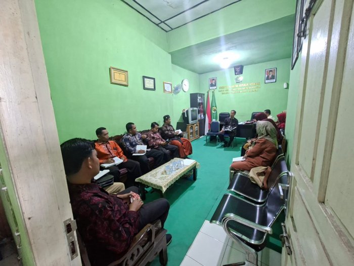 MTsN 1 Merangin, (5/11/2025)_Kelompok Kerja Kepala Madrasah (K3M) MTs se-Kementerian Agama Kabupaten Merangin menggelar Rapat Koordinasi (Rakor) dalam rangka persiapan pelaksanaan Aksioma ke-3 Tingkat MTs. Kegiatan ini berlangsung di MTsN 1 Merangin dan dihadiri oleh seluruh kepala MTs negeri dan swasta di bawah naungan Kemenag Merangin. Rakor dibuka secara resmi oleh Ketua K3M MTs Kabupaten Merangin, Bapak Tri Sulistiyo, S.Pd., MA. Beliau menekankan pentingnya koordinasi dan sinergi antarmadrasah untuk menyukseskan penyelenggaraan Aksioma tahun ini.