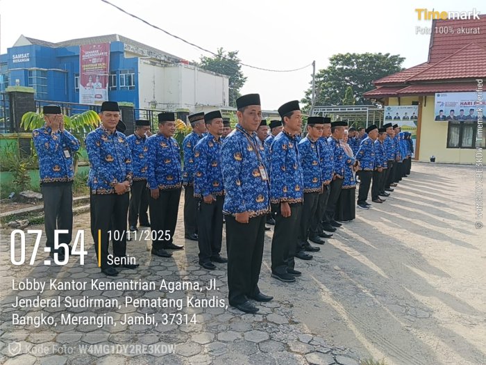 MTsN 1 Merangin, (11/11/2025)_Memperingati Hari Pahlawan Nasional Tahun 2025, Kepala MTsN 1 Merangin, Bapak Tri Sulistiyo, S.Pd., M.A., mengikuti upacara peringatan yang diselenggarakan oleh Kantor Kementerian Agama Kabupaten Merangin, Senin 10 November 2025. Upacara diikuti oleh seluruh pejabat, pegawai, kepala madrasah, serta perwakilan dari berbagai satuan pendidikan di bawah naungan kemenag. Bertindak sebagai pembina upacara, Kepala Kantor Kemenag.
