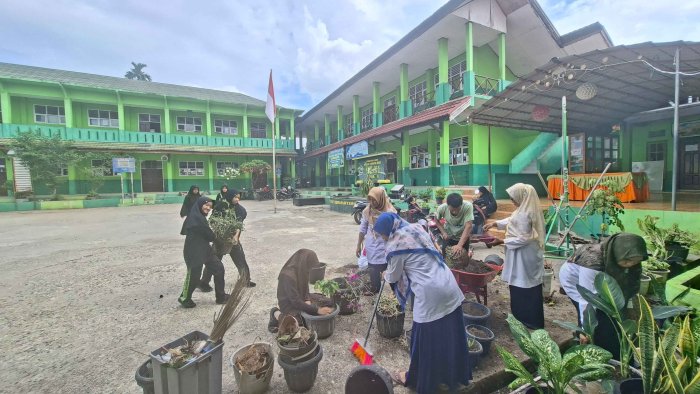 MTsN 1 Merangin, (2/12/2025)_Dalam rangka menciptakan lingkungan belajar yang lebih hijau, asri, dan nyaman, majelis guru MTsN 1 Merangin dibantu anggota Pramuka melaksanakan kegiatan penghijauan. Kegiatan ini menjadi bagian dari upaya madrasah dalam meningkatkan kepedulian terhadap lingkungan sekaligus menanamkan nilai gotong royong kepada seluruh warga madrasah.