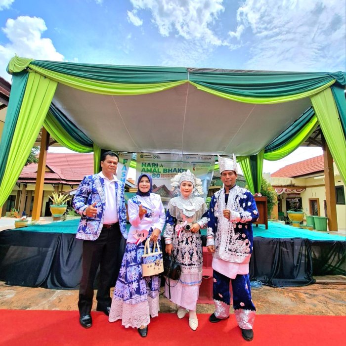 MTsN 1 Merangin, (17/12/2025)_Rabu lalu, pasangan Kepala Madrasah MTsN 1 Merangin Bapak Tri Sulistiyo, S.Pd., M.A., beserta nyonya Ibu Fitria Ariyani, berhasil meraih Juara Harapan pada Lomba Fashion Show Baju Adat Daerah Melayu yang diselenggarakan oleh Kantor Kementerian Agama Kabupaten Merangin dalam rangkaian Hari Amal Bakti (HAB) ke-80 Kementerian Agama Republik Indonesia. Lomba fashion show tersebut diikuti oleh berbagai perwakilan satuan kerja dan madrasah di lingkungan Kemenag Kabupaten Merangin. Para peserta menampilkan busana adat Melayu dengan beragam corak, warna, dan filosofi budaya yang mencerminkan kearifan lokal.