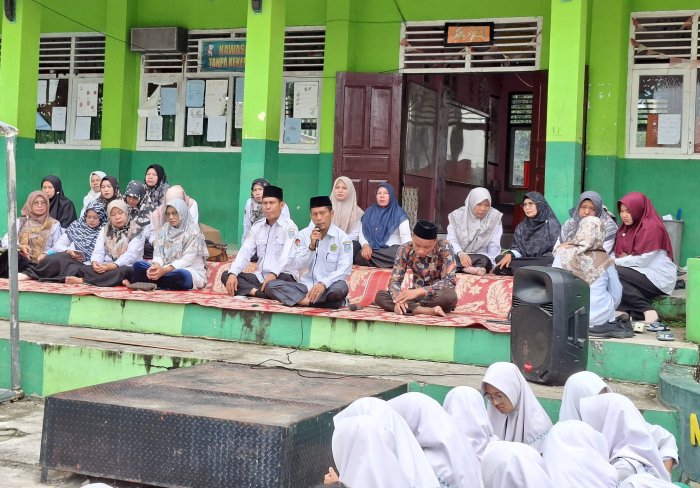 Kegiatan tahlil dan doa bersama dilaksanakan pagi ini di halaman utama madrasa. Seluruh keluarga besar madrasah mengikuti mulai dari kepala madrasah, dewan guru, tenaga kependidikan, serta seluruh peserta didik MTsN 1 Merangin. Acara dilaksanakan dengan penuh kekhusyukan sebagai bentuk penghormatan terakhir dan ungkapan duka cita mendalam atas jasa dan pengabdian almarhumah selama menjalankan tugas sebagai pendidik.